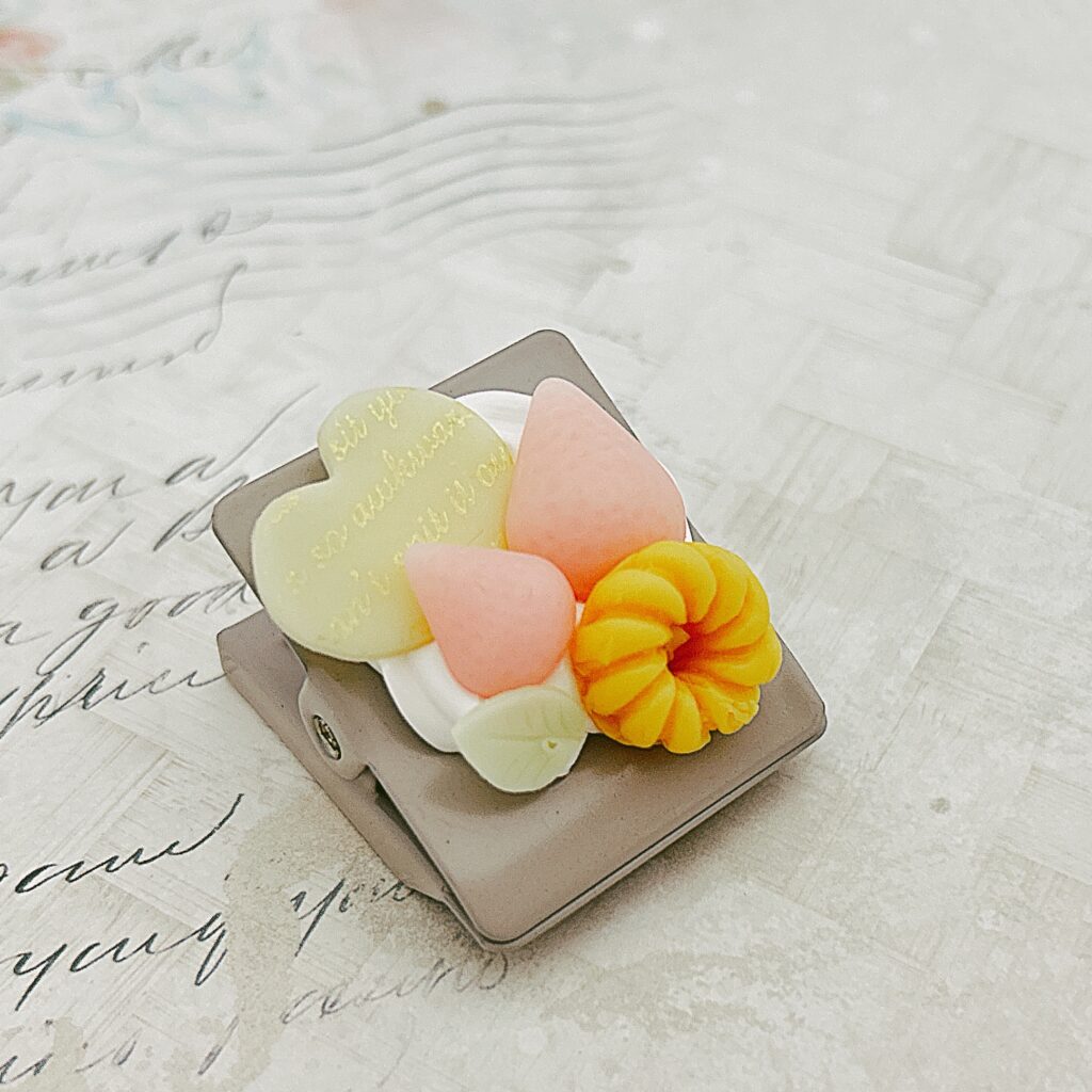 ボールペンクリップにクリームをしぼってお好きなパーツ5個をデコレーションします。
