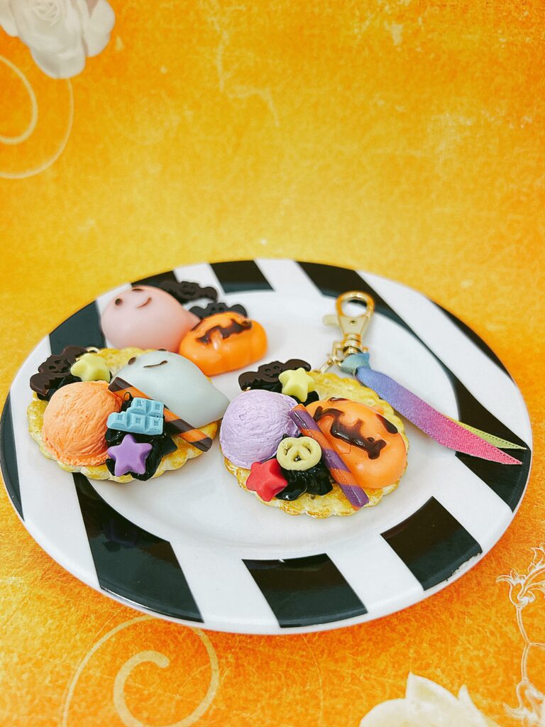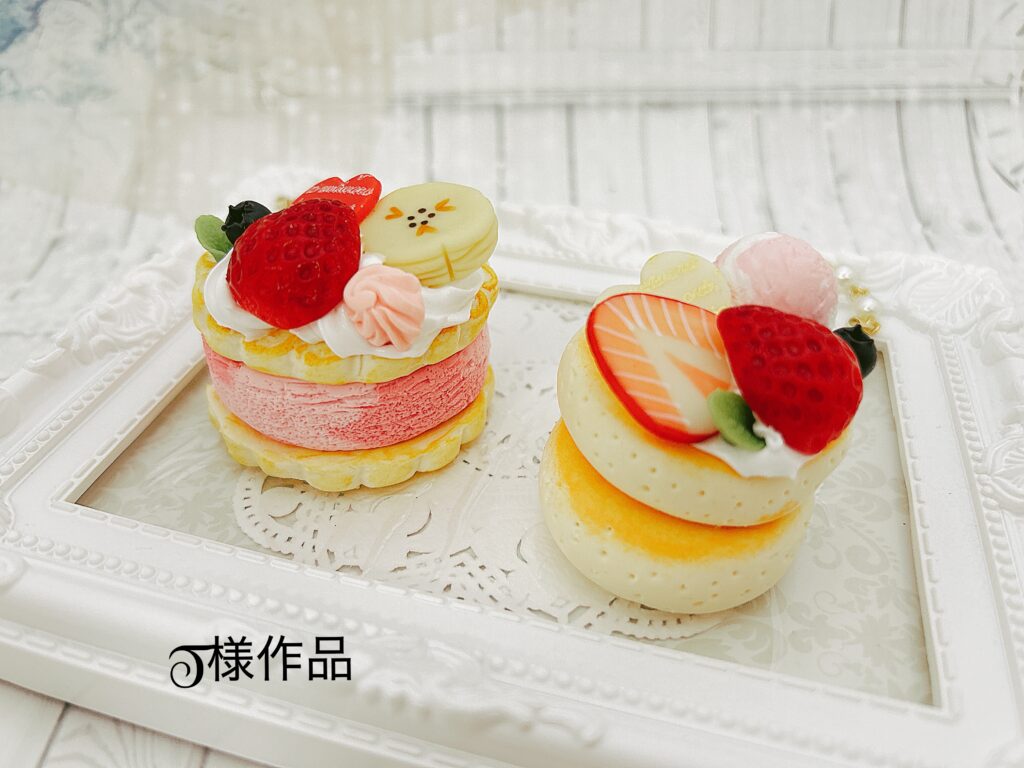 体験講座のアイスサンドバッグチャームとパンケーキバッグチャームです。