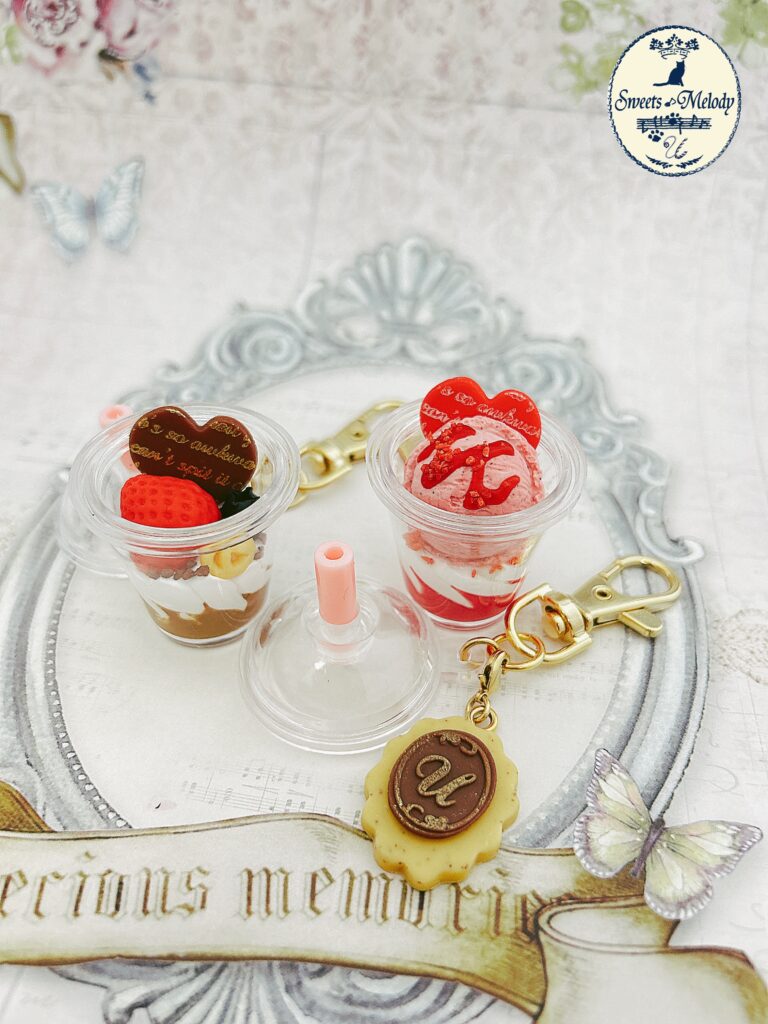 ミニチュアサイズで完成作品高さ約6cm(カップまでは約3.5cm)のアイスシェイク。